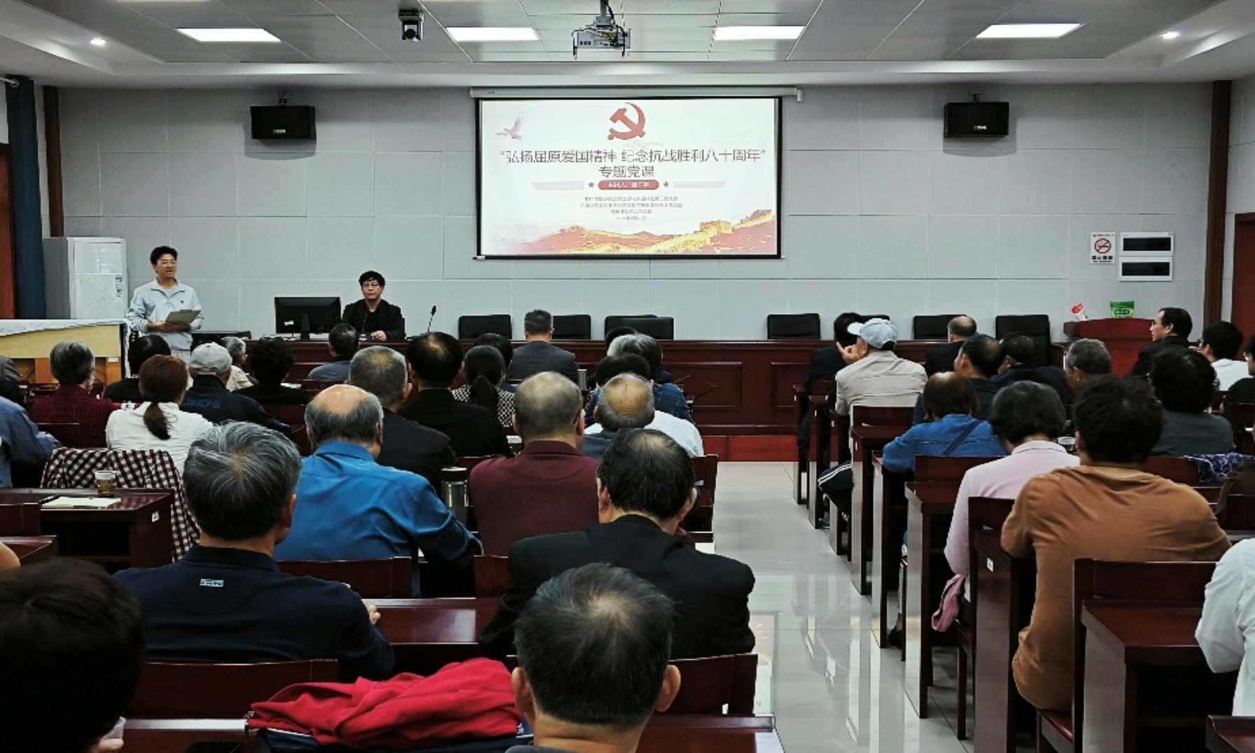 为深入挖掘传统文化中的爱国主义精神,推动爱国教育与党建工作深度融合,9 月 27 日,我院研究生党支部、机电工程学院本科生第五党支部以及离退休工作处党委第二、三、十党支部,在离退休处会议室联合举办以“弘扬屈原爱国精神,纪念抗战胜利八十周年”为主题的党课学习活动。全国优秀教师、传播屈原文化第一人、湖南科技大学吴广平教授担任主讲,离退休党委书记、工作处处长廖志鹏、材料科学与工程学院党委书记乐斌辉、机电工程学院党委副书记杜鑫等出席活动,五个支部的党员参加。