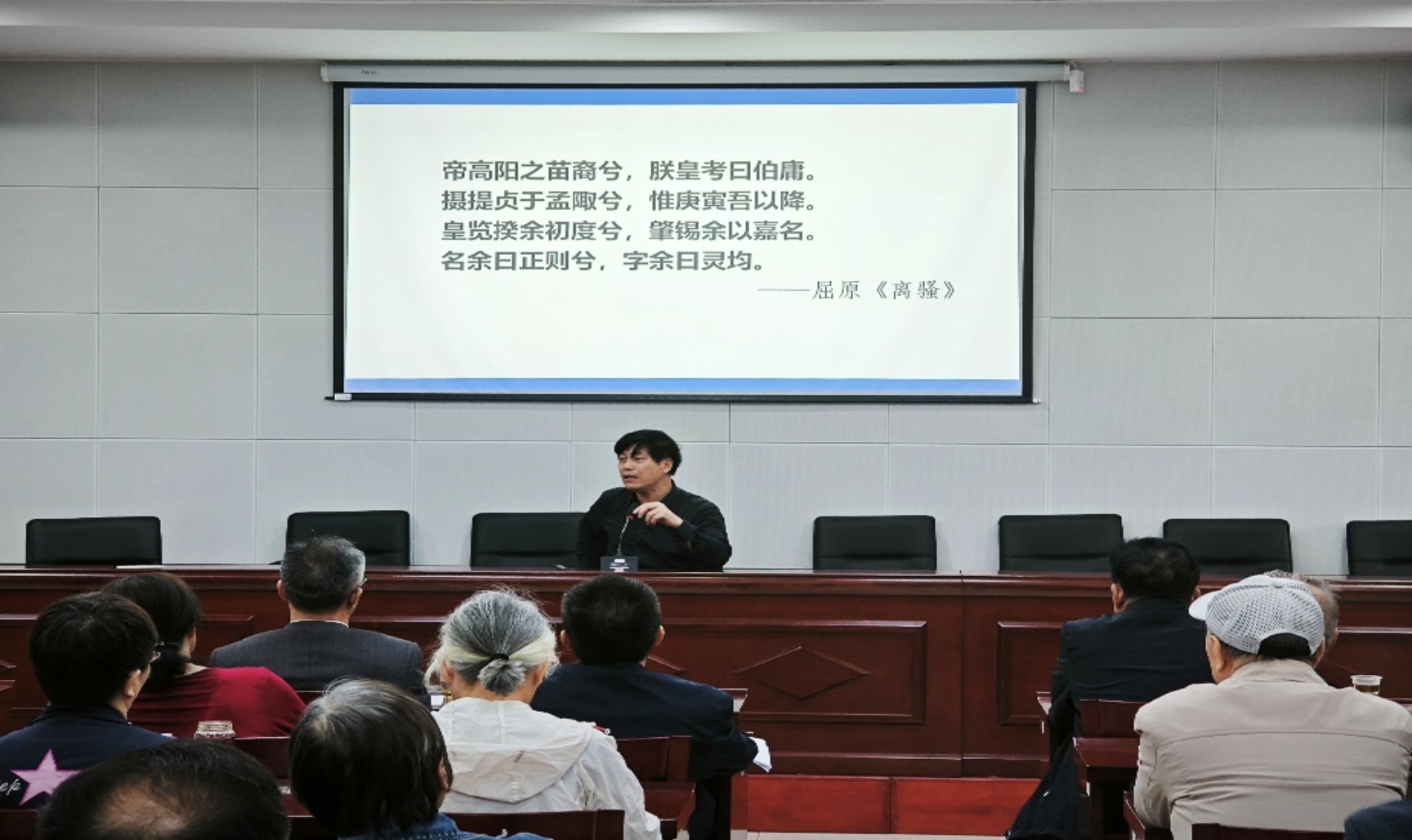 吴广平围绕主题,旁征博引,详实讲述屈原的道德追求与个人魅力,阐释其时代价值;结合抗战胜利八十周年,回顾抗战岁月,指出抗战精神与屈原爱国精神相契合,同为民族精神瑰宝。吴教授通过生动幽默的语言,把深奥的古典文学讲得通俗易懂、引人入胜,极富激情和感染力。