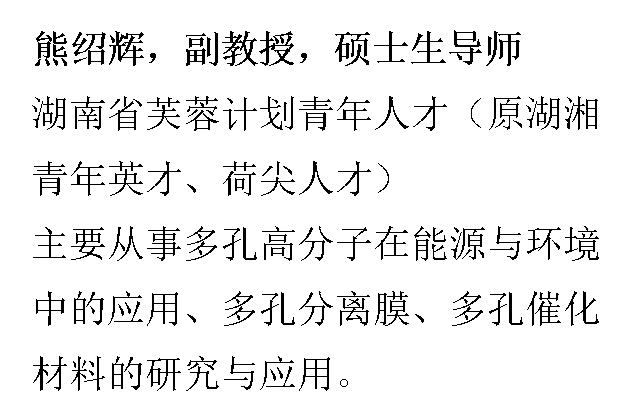 主要研究方向为微孔有机高分子材料的设计、合成及在环境净化和清洁能源中的应用、水性乳液制备关键技术与工艺研究。主持国家自然科学基金、湖南省高新技术产业科技创新引领计划等国家级/省部级项目7项,获湖南省自然科学奖二等奖、湖南省科学进步奖二等奖、湖南省高等教育教学成果三等奖、东莞市科技进步二等奖、东莞市专利优秀奖等多项奖励。获授权国家发明专利12项,应用与转化专利5项,其中,高密度氧化聚乙烯蜡乳液成功替代巴斯夫等公司的进口产品。 |